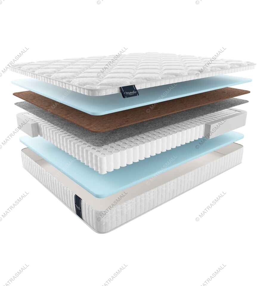 Матрас укомплектован независимым пружинным блоком "Мультипакет" (1040 пружин на спальное место) с уменьшенным диаметром пружин для большей жесткости.
