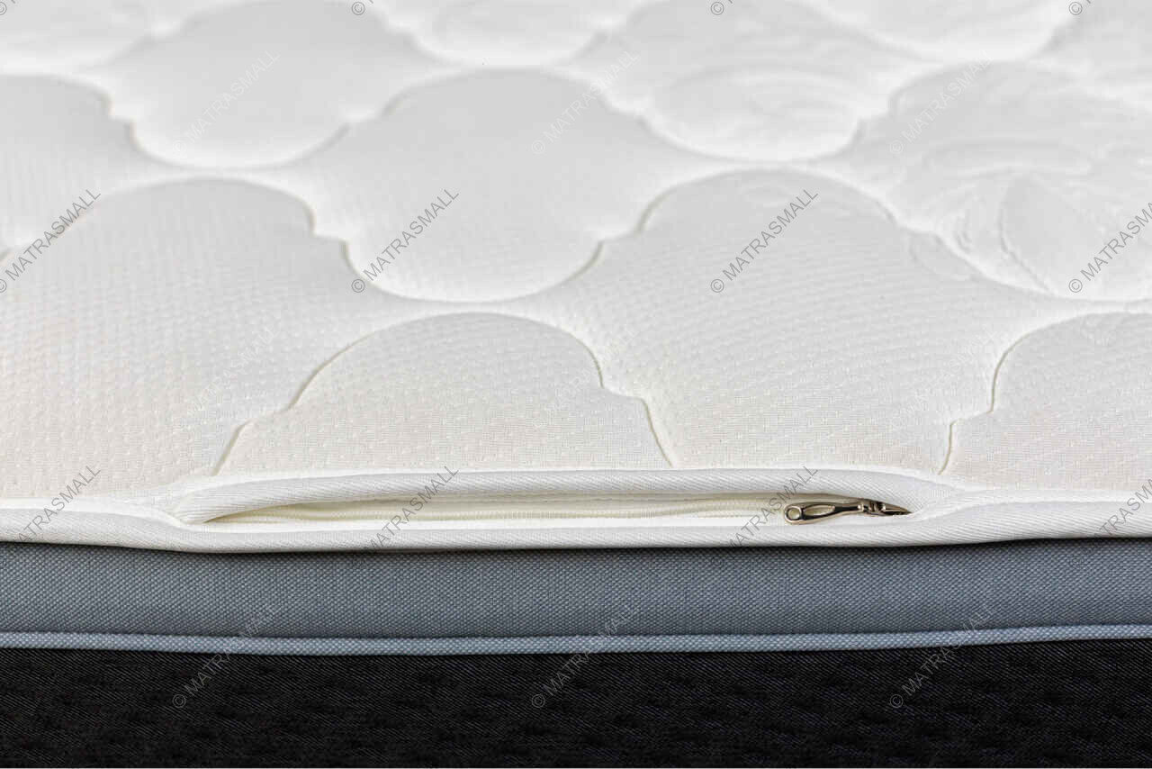 По обеим сторонам от пружинного блока проложены слои Feltro Termico — плотный термофиксированный фетр из шерсти, пуха и хлопка. Материал защищает слои от давления пружин, поэтому матрас служит дольше, сохраняет упругость и ортопедические свойства.