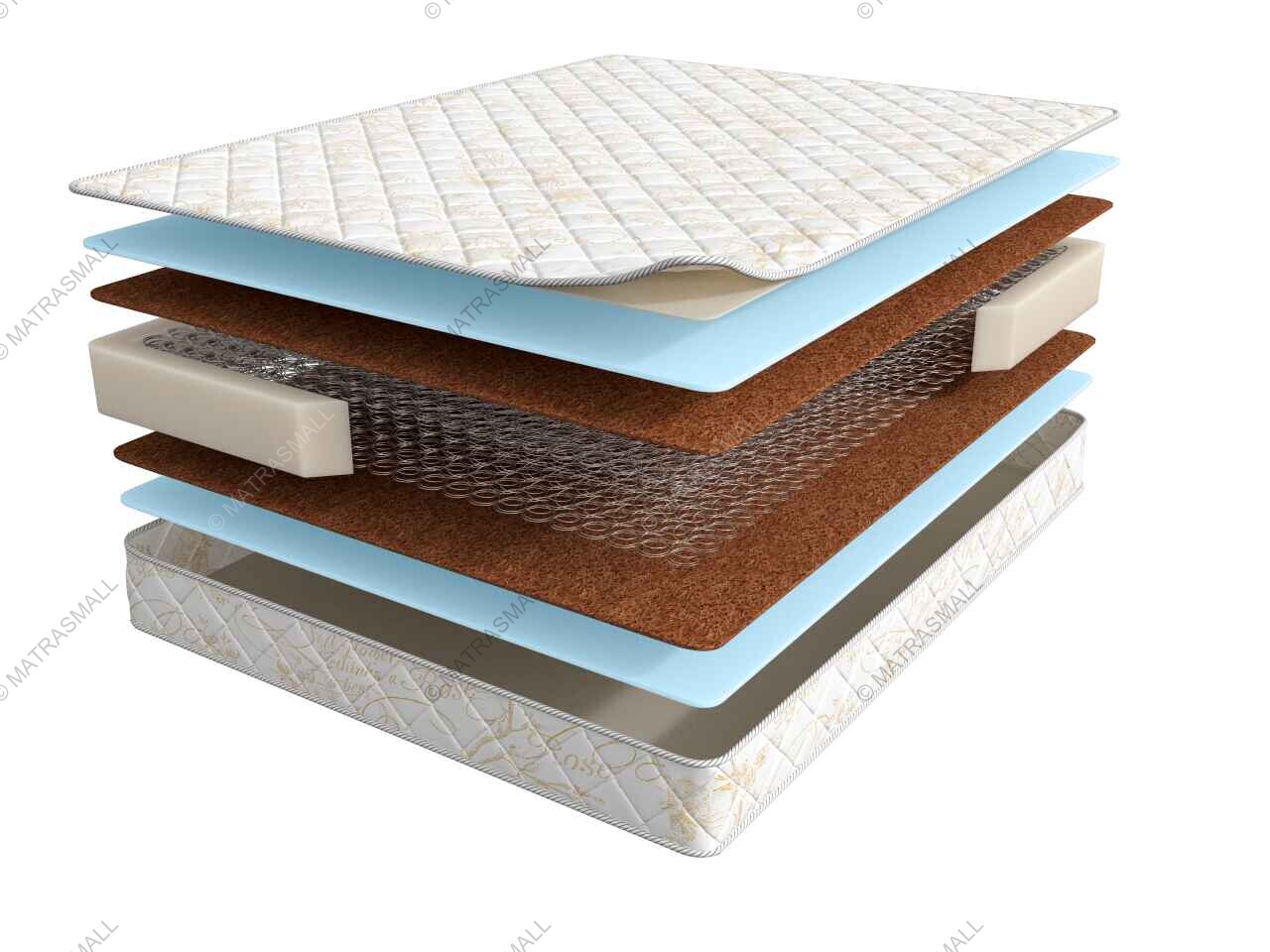 Матрас оптимальной упругости на основе пружинного блока Bonnel и настилом из бикокоса обеспечивает равномерную поддержку позвоночника во время сна.