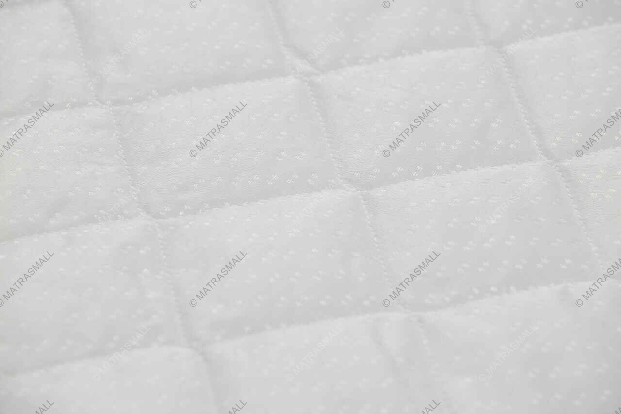 Чехол матраса выполнен из жаккарда, стеганного на синтепоне методом ультразвуковой стежки. В данной технологии не используются нитки, поэтому материал является более долговечным и износостойким.
