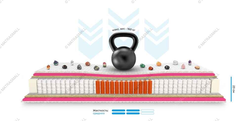 Матрас средней жесткости Legend обладает средней поверхностной эластичностью и оптимальным ортопедическим эффектом благодаря настилу из 2 см пенополиуретана с одной стороны матраса. ППУ – это современный материал, очень часто его называют искусственный латекс, так как по своим характеристикам, он анатомичный и не жесткий материал. Пенополиуретан усиливает анатомический эффект матраса. Это оптимальный выбор для тех, кому важен комфортный сон и долговечность матраса.