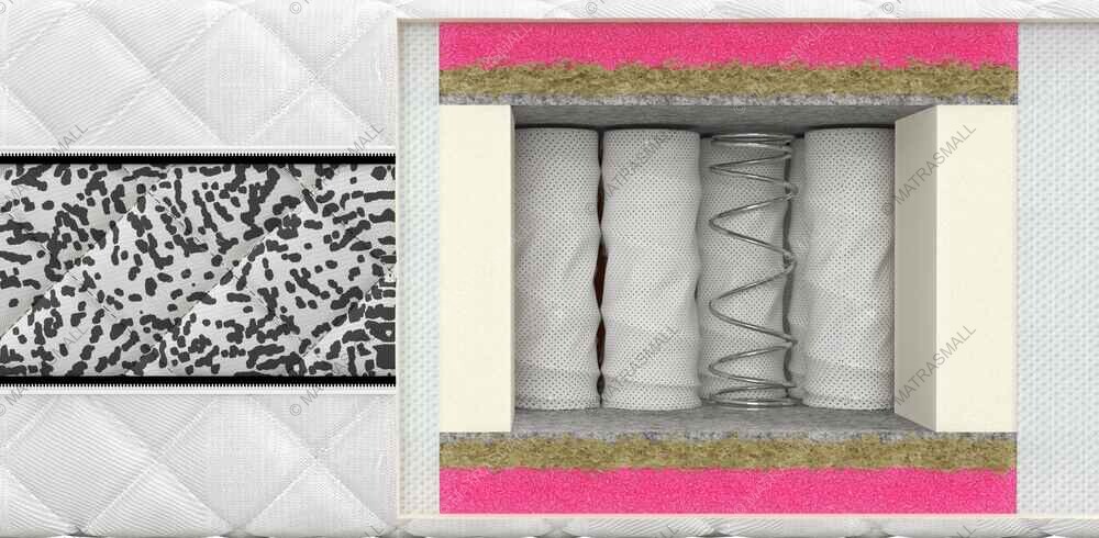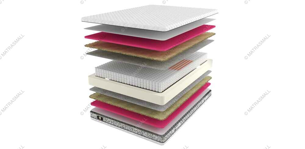 Так же, в матрасе проложены слои латексированного сизаля. Это один из лучших жёстких материалов растительного происхождения. Сизаль изготавливают из волокон агавы, растущей в Мексике. Благодаря своим волокнам и плотности 1000 г на м3, сизаль долговечен, придаёт матрасу жёсткость, не нарушая его анатомические свойства. Это увеличивает срок службы матраса.