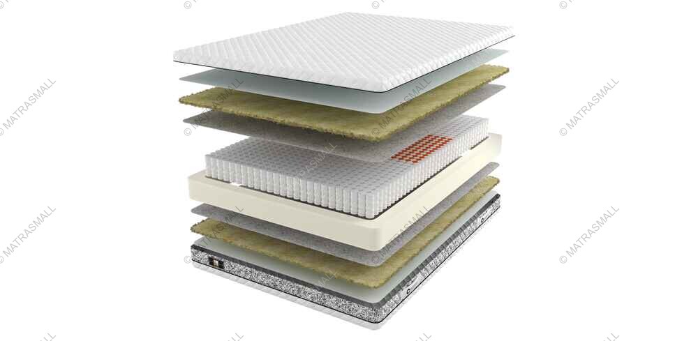Верхняя часть матраса выполнена из уникального 100% хлопкового жаккарда с фирменной белой клеткой. Этот материал простеган специальным рисунком в эксклюзивном стиле «Small Diamond». Сохранит свой элегантный вид на протяжении многих лет. Бурлет матраса, то есть его боковая часть, впервые получил двухцветную «чёрно-белую» молнию. Дизайн бурлета и всего матраса подчеркивают ручки с вышивкой BioCrystal, придавая изделию элегантный вид и удобство при транспортировке.