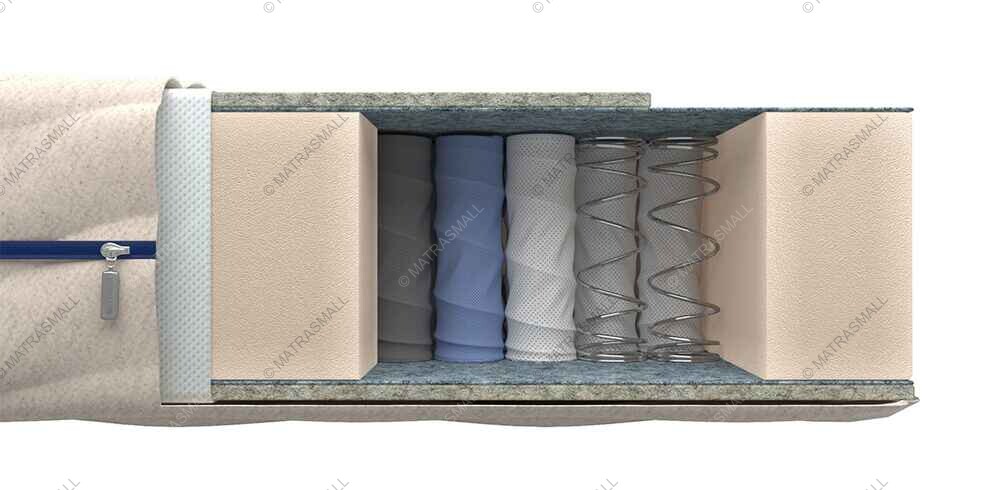 Основу матраса составляет блок независимых пружин Nine Touches. Благодаря наличию в блоке 7-ми зон комфорта, он обеспечивает отличную поддержку для тела человека. Пространство между пружинами дополнены специальными вставками из мягкой пены, которые, в конечном итоге, создают уже 9 зон комфорта. Вставки из пены принимают на себя часть нагрузки от блока пружин, придают каждой зоне комфорта дополнительную упругость, регулируя при этом жесткость поверхности. В общей сложности пружинная система насчитывает 290 обычных независимых пружин и 100 "пенопружин". Итого на квадратный метр получается 390 пружин. Этого вполне достаточно для того, чтобы данная система обеспечивала ортопедический эффект в высокой степени.