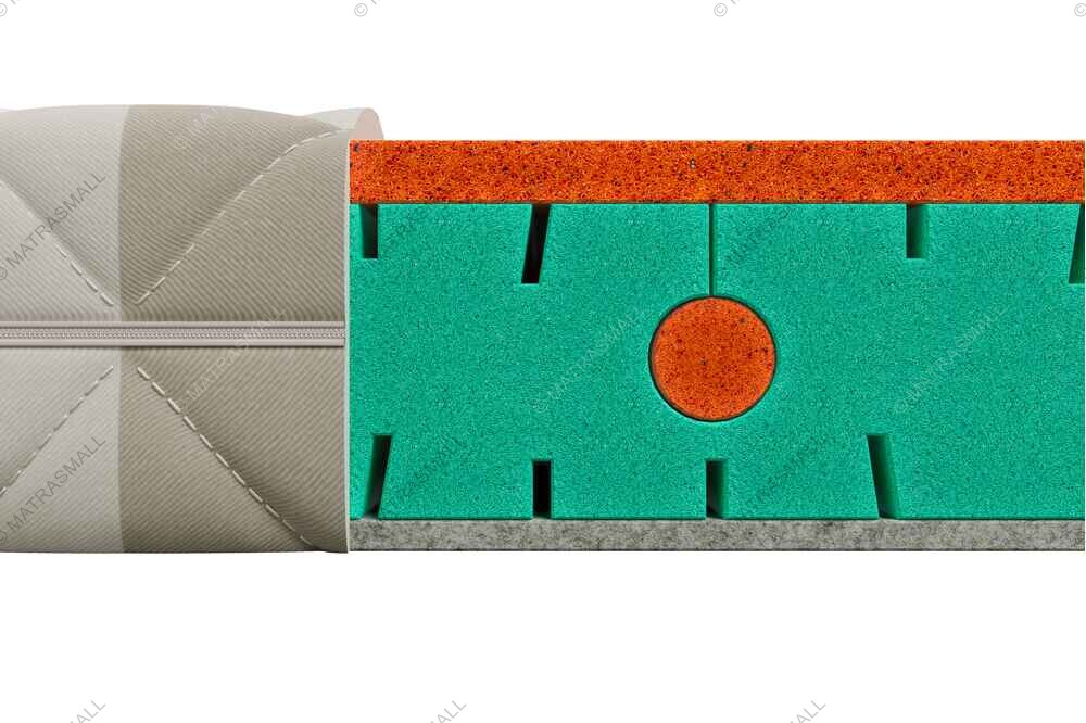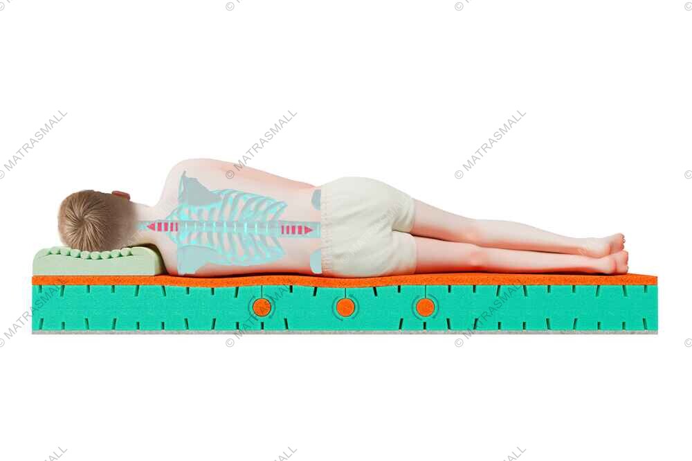 Этот матрас имеет в своей основе испанскую соевую пену Life Foam, усиленную технологией стреч-вставок «Stretch Roller» из соевой пены Viscoppper – это безопасный натуральный наполнитель, создающий эффективную анатомическую поддержку, которая на этапе взросления играет первостепенную роль для формирования крепкого и здорового позвоночника и отсутствия мышечного перенапряжения во время отдыха, а вставки способствуют лучшему распределению нагрузки на спальное место.