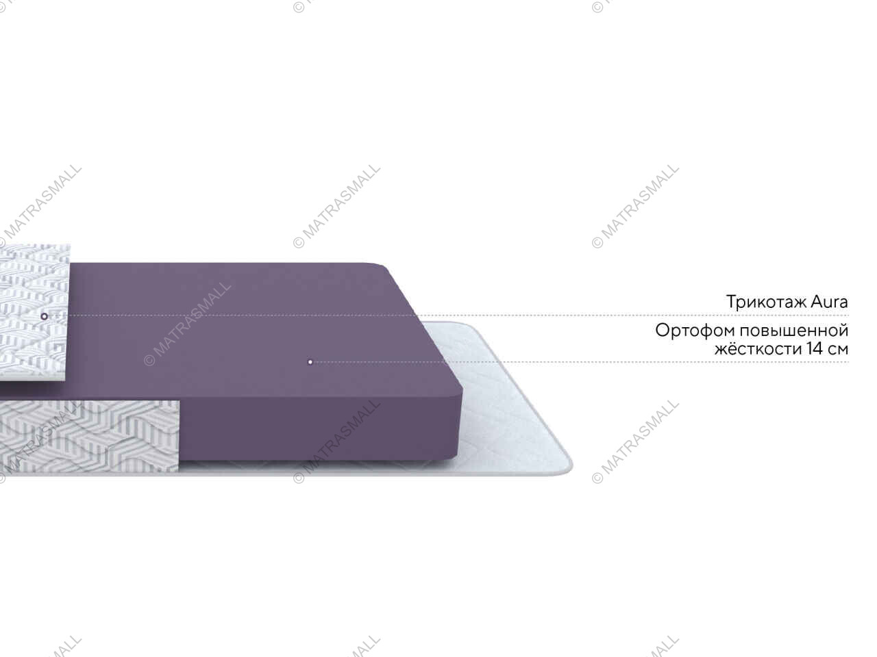 Матрас покрывает трикотажный чехол с элегантным геометрическим рисунком, простеганный на высообъемном волокне и дополнительном слое Ортофом.