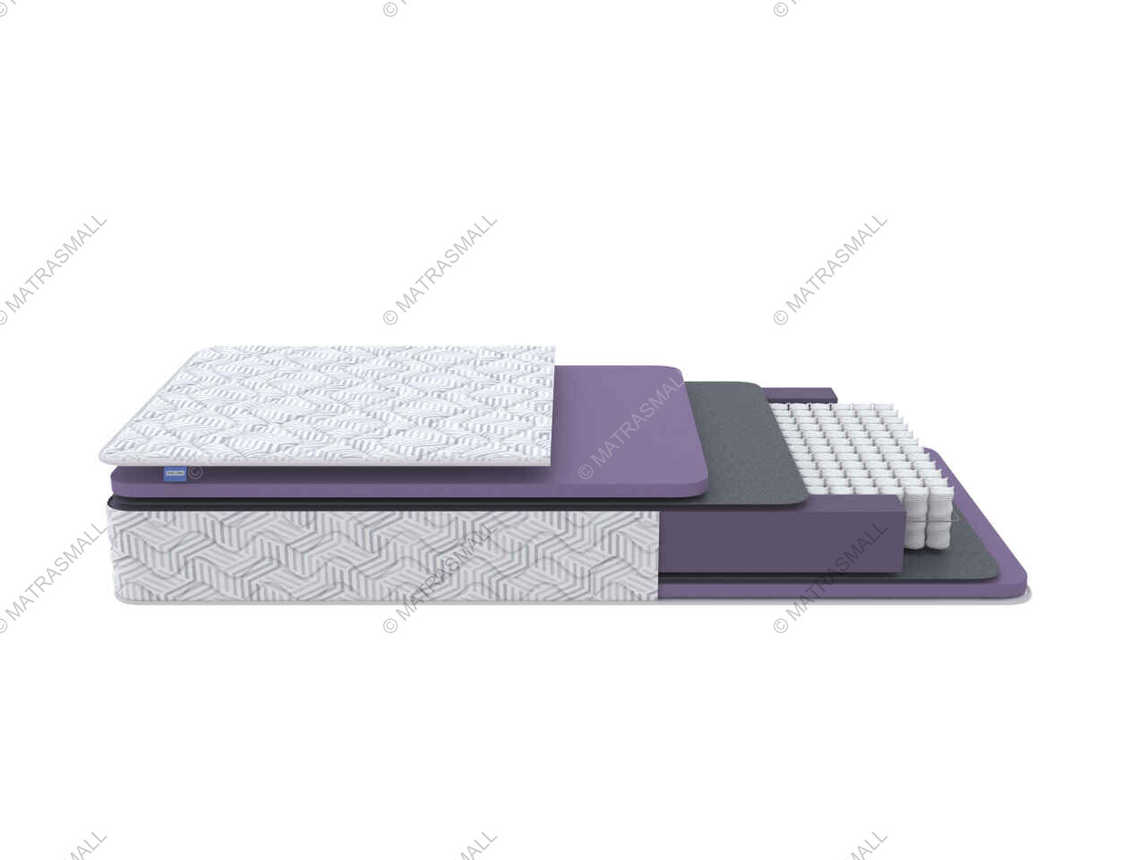 Матрас покрывает трикотажный чехол с элегантным геометрическим рисунком, простеганный на высообъемном волокне и дополнительном слое Ортофом.