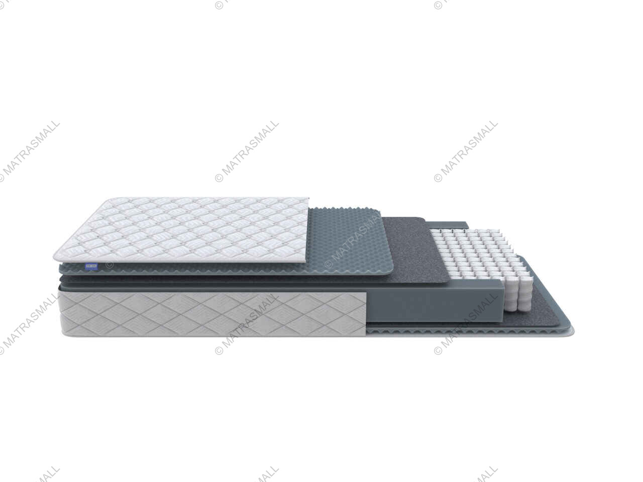 Матрас покрывает прочный чехол из жаккарда с ромбовидным рисунком со стежкой из синтепона. Чехол обеспечивает защиту матраса, легко чистится и устойчив к износу.