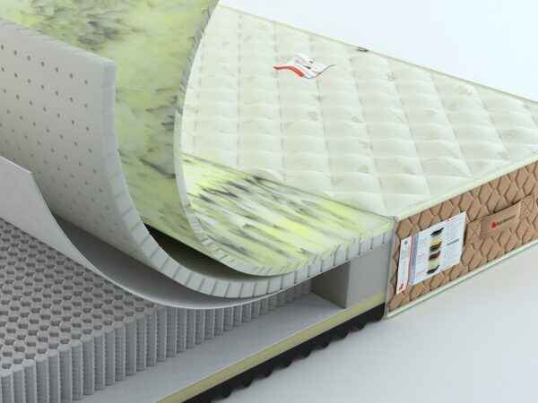 В основе матраса блок независимых пружин S2000, где 1000 пружин на м2, диаметр проволоки 1 мм., высотой 14 см. Каждая пружина находится в отдельном тканевом чехле и не зависит от соседних. Такая конструкция обеспечивает поддержку позвоночника и правильное положение тела во время сна.