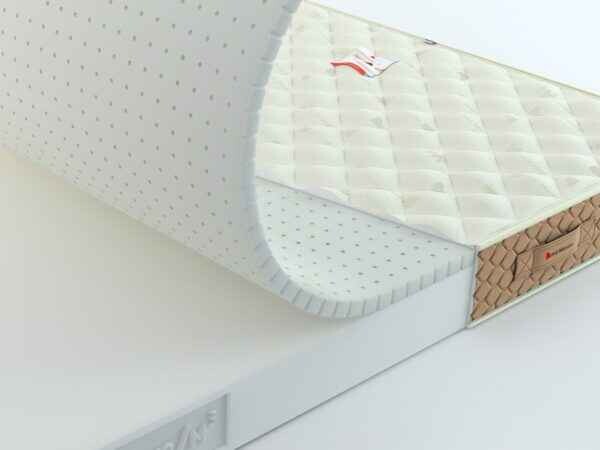 Двухсторонний беспружинный матрас RollMatratze MARGARITA с разной жесткостью сторон. Он создан на основе блока Roll Schaum (высокоэластичный пенополиуретан EL3040). Это экологически чистый материал, не вызывает аллергии и гарантирует правильную поддержку позвоночнику.