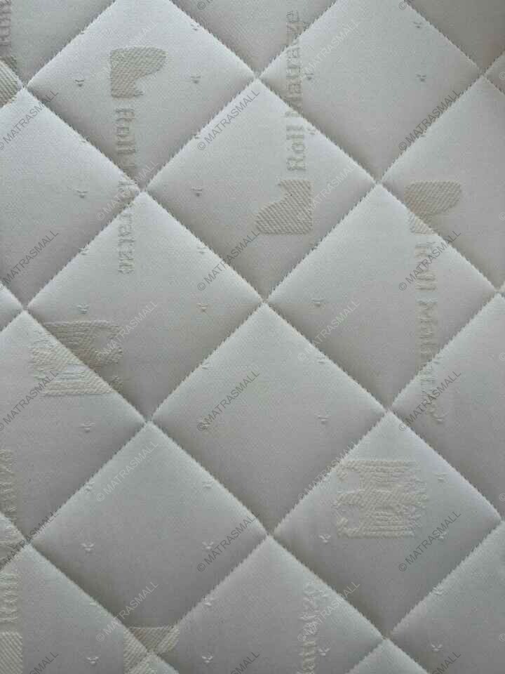 Чехол матраса Roll Perfekt выполнен из натуральной и крепкой хлопковой ткани жаккард с фирменным логотипом. Состав ткани: 74% хлопок, 26% полиэстер. Чехол простёган на многослойном холлофайбере — 350 гр./м2. Этот наполнитель отличает ортопедичность, воздухопроницаемость и износостойкость. Кроме того, холлофайбер полностью безопасен и не токсичен, а также не впитывает влагу и посторонние запахи. Чехол отлично держит форму, пропускает воздух и не накапливает влагу.