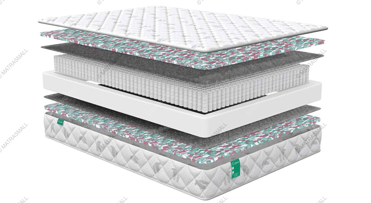 Для наполнения матраса использует термовойлок. Это прочный и одновременно плотный материал, который хорошо сглаживает перепады высот между пружинами и даёт деликатную мягкость. Ещё одна функция войлока – это изоляция пружинного блока. Полотна материала оберегают спирали от деформаций и воздействия внешней среды. Благодаря термовойлоку пружинный блок прослужит долго и исправно.