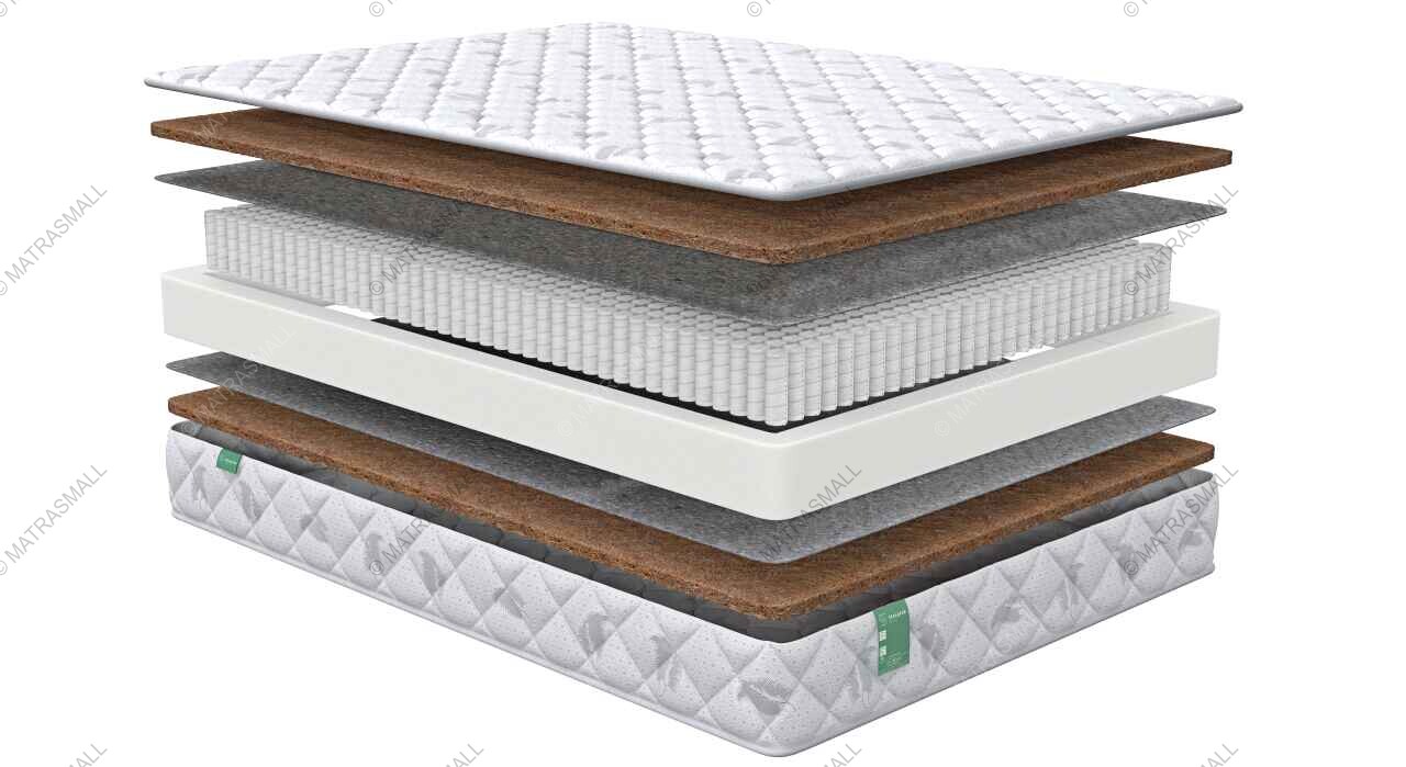 Для наполнения матраса используется койра кокоса. Материал получают из волокон кокоса, поэтому это 100% природный компонент. Гибкость полотнам обеспечивает пропитка натуральным латексным составом. В результате наполнитель обретает пластичность и жёсткость, что позволяет ему правильно адаптироваться под линии спины. Материал не подвержен гниению, не скапливает пыль и воздухопроницаем. Всё это благотворно влияет на микроклимат спального места.