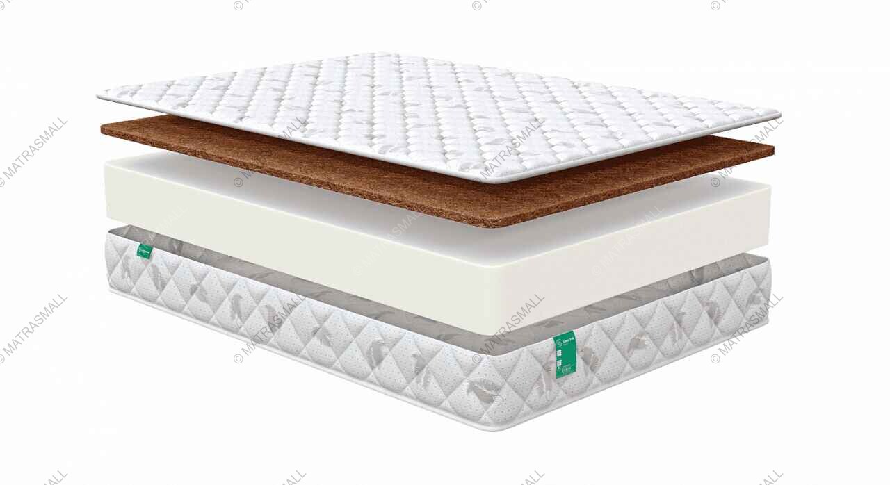 Койра кокоса обеспечивает поверхность матраса необходимой жесткостью. Наполнитель слоя дает отличную поддержку тела во время сна, но при этом материал анатомичен. Натуральные волокна в составе спрессованы в единое полотно,не рассыпаются и не рассыхаются.
