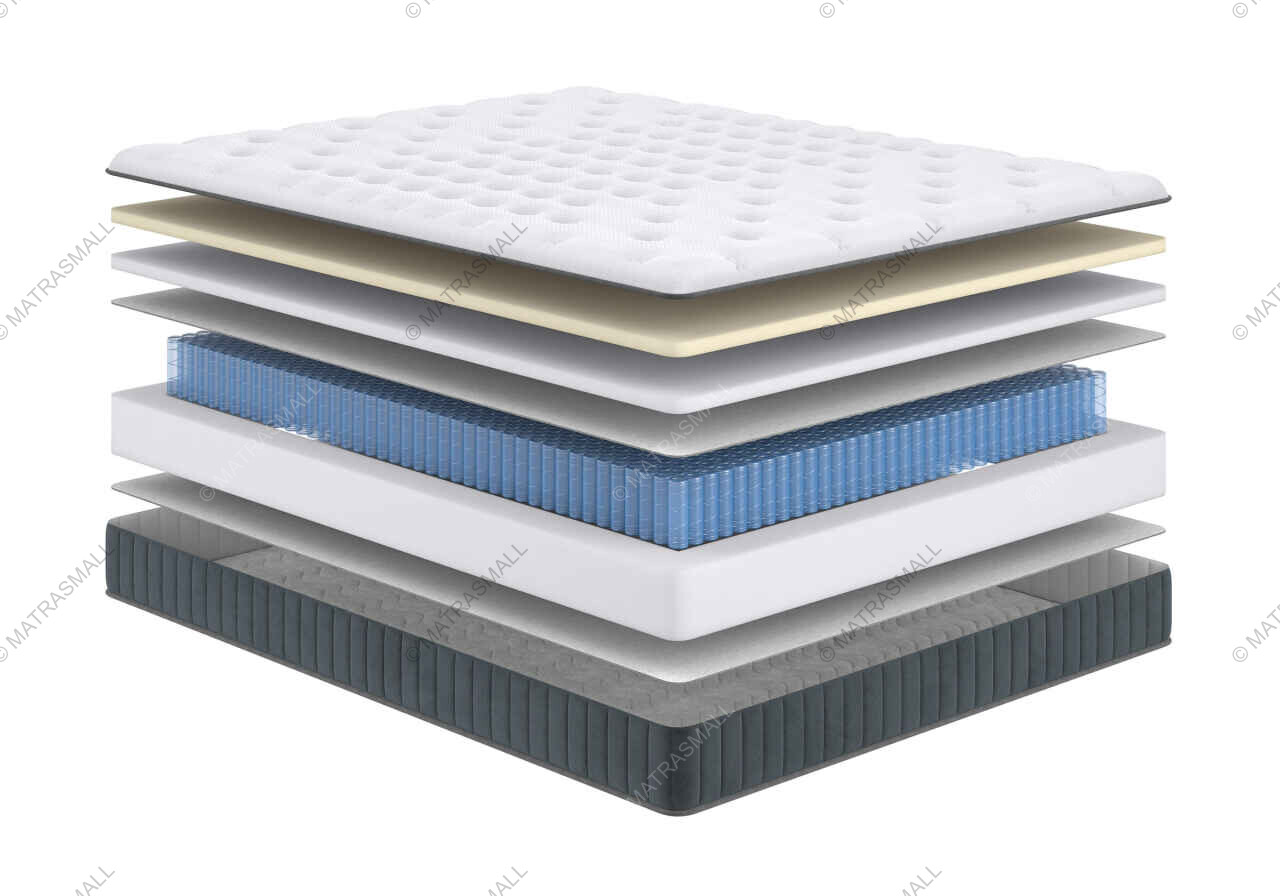 Пружинный блок MultiPocket. Использование большого количества пружин небольшого диаметра повышает точечную эластичность, то есть способность повторять форму тела, обеспечивают правильную поддержку позвоночника.