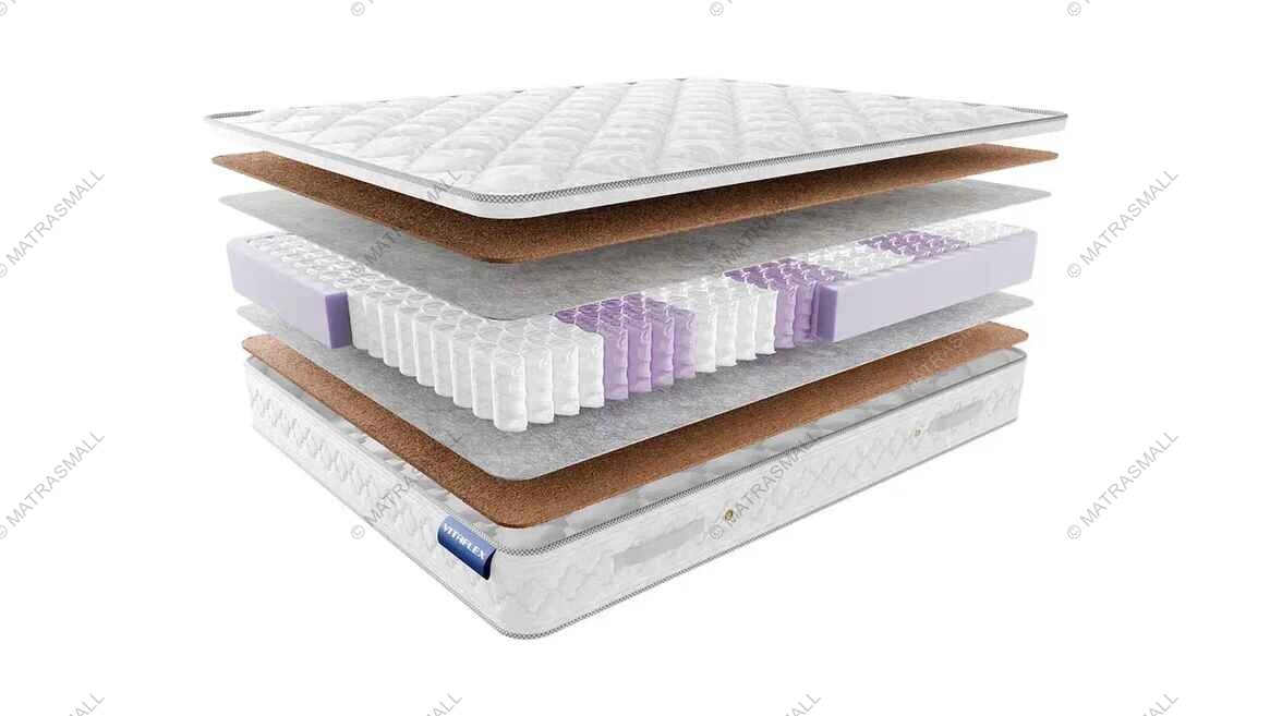 С обеих сторон от пружинного блока в матрасе находится слой кокосовой койры, благодаря чему матрас получился выше средней жесткости. Такое сочетание слоев идеально подойдет абсолютно всем, потому что способствует качественному отдыху и комфортному сну.