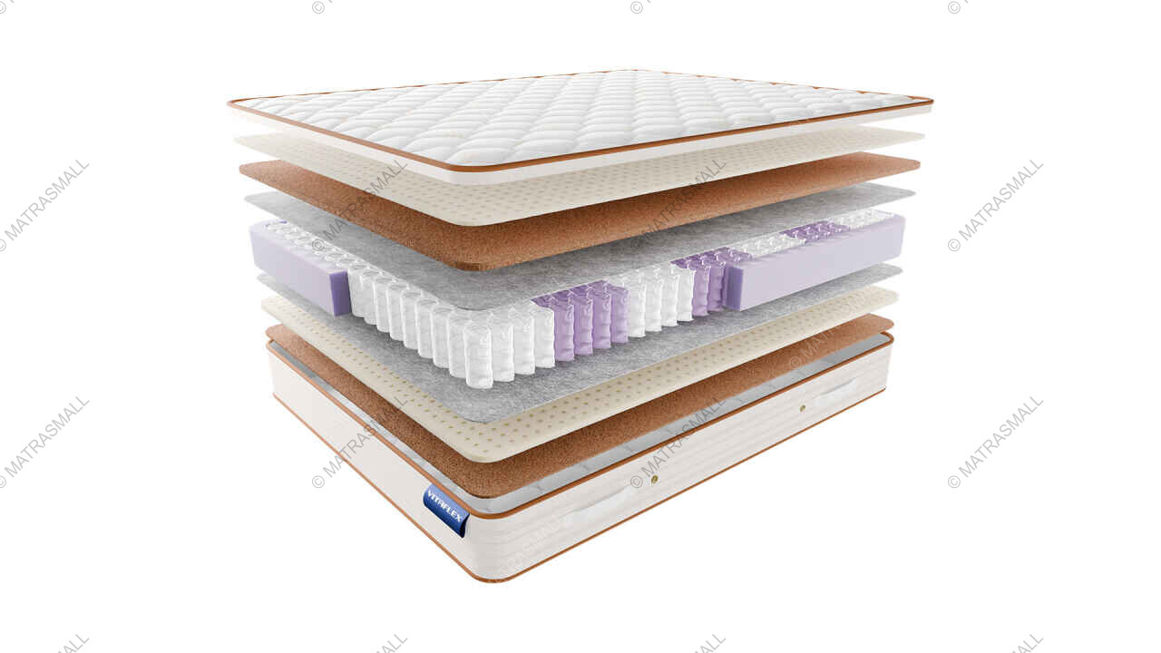 Латексированная кокосовая койра - один из самых распространённых материалов для улучшения ортопедических свойств матраса, пропитка из латекса придает кокосовым волокнам дополнительную жесткость и упругость, не нарушая при этом воздухопроницаемость матраса.