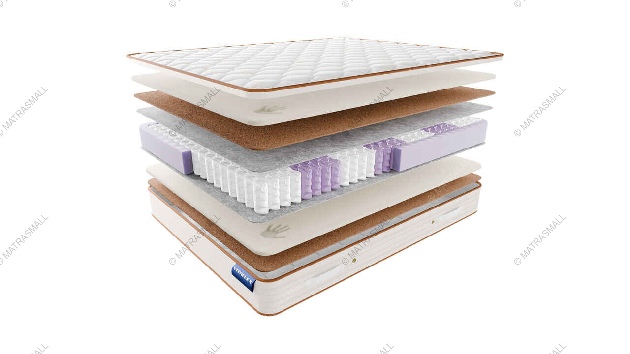 С каждой из сторон матраса находятся слои кокосовой койры, которую смягчает пена с эффектом памяти мемори.