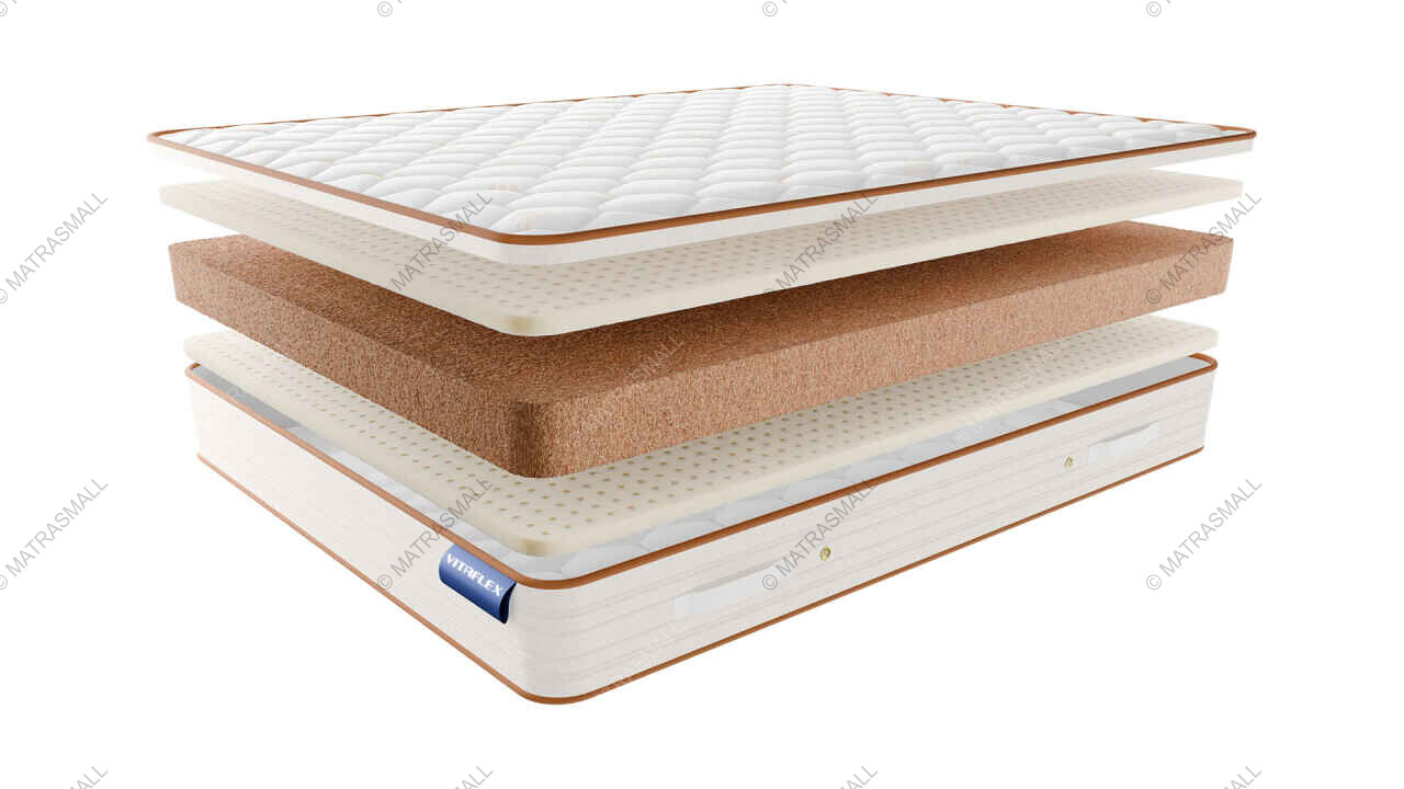 Латексированная кокосовая койра - один из самых распространённых материалов для улучшения ортопедических свойств матраса, пропитка из латекса придает кокосовым волокнам дополнительную жесткость и упругость, не нарушая при этом воздухопроницаемость матраса. Материал не вызывает аллергический реакций.