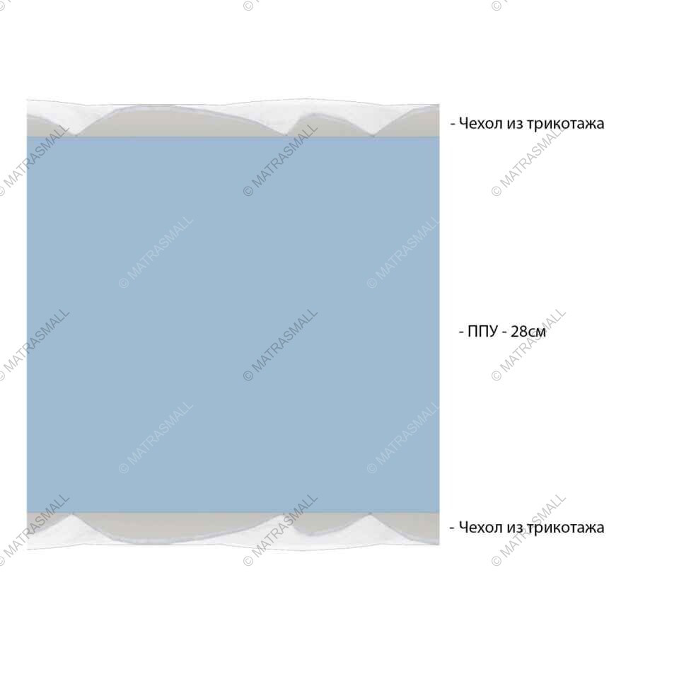 Чехол матраса простеган на ППУ 0,7 см + 200 гр. холлкона. ППУ - это слой высокоэластичной гипоаллергенной пены высокой плотности, позволяющей значительно увеличить сроки эффективной эксплуатации. Он не накапливает пыль, хорошо выводит влагу.