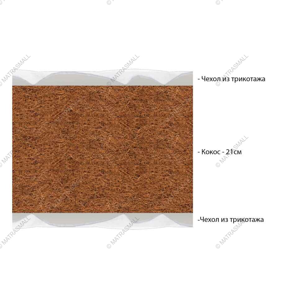 Особенность модели в ее составе: кокосовые блоки, образующие основу матраса, - натуральный, антиаллергенный материал. Прекрасно пропускает воздух, не задерживает остаточную влагу. Отсутствие пружин защищает конструкцию от скапливания пыли.