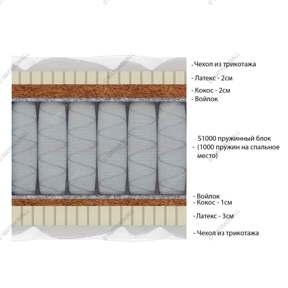 Слои кокоса с блоком независимых пружин отлично поддерживают позвоночник во время сна.