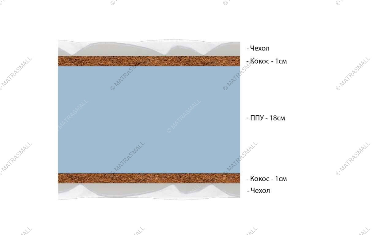 По каждой стороне расположены слои кокосовой латексированной койры, натурального материала.