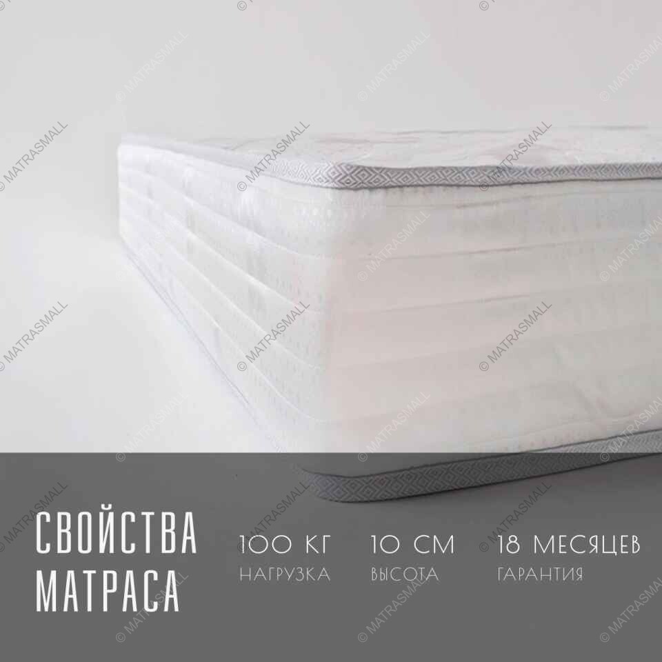 Чехол матраса сшит из белого трикота с нежным рисунком. Для комфорта чехол простеган на синтепоне плотностью 80 г/м². Такое покрытие гарантирует высокую устойчивость к загрязнениям и износу.