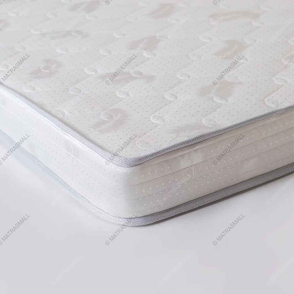 Чехол матраса сшит из белого трикота с нежным рисунком. Для комфорта чехол простеган на синтепоне плотностью 80 г/м². Такое покрытие гарантирует высокую устойчивость к загрязнениям и износу.