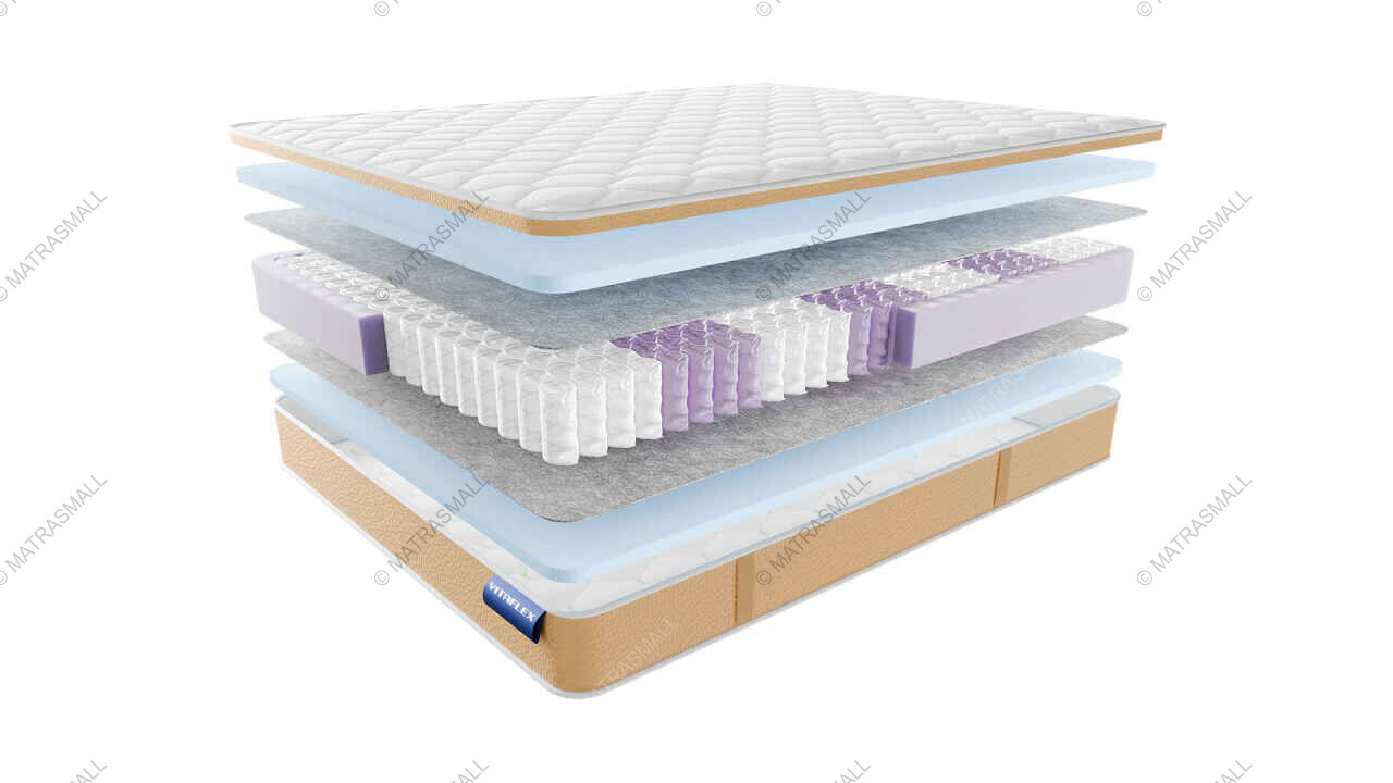 В основе матраса лежит независимый пружинный блок S500. На спальное место приходится 500 пружин. Каждая пружина находится в чехле и изолирована от соседних. Такая конструкция позволяет обеспечить точечное распределение нагрузок.