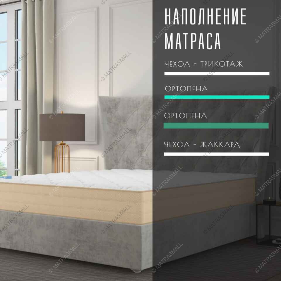 В основе матраса используется 2 слоя ортопены разной плотности. Ортопена - искусственный гипоаллергенный материал с высокой плотностью. Ортопена устойчива к высоким нагрузкам и отлично поддерживает позвоночник, имеет анатомические характеристики, позволяющие ей точно адаптироваться к каждому изгибу тела, что способствует полному расслаблению мышц.