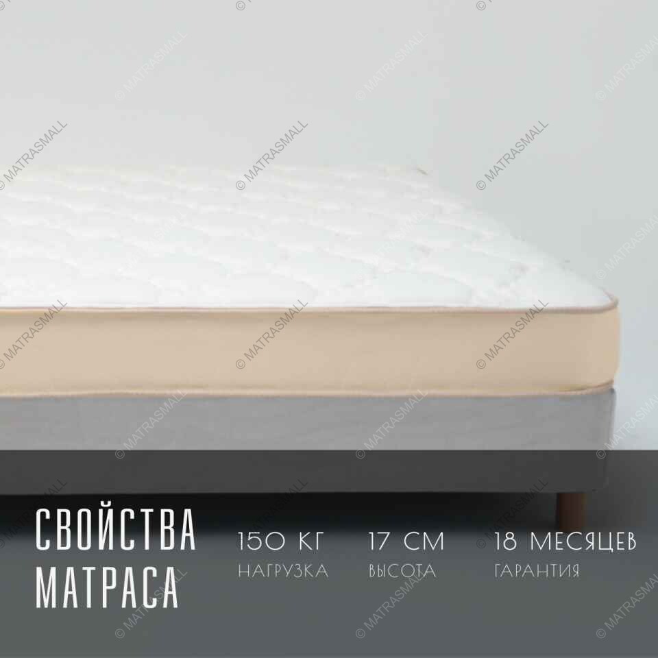 Чехол матраса с одной стороны выполнен из мягкого трикотажа, с другой стороны из хлопкового поликоттона. Для мягкости и комфорта чехол простеган на синтепоне, плотностью 100 гр. Бурлет матраса выполнен в бежевом цвете.