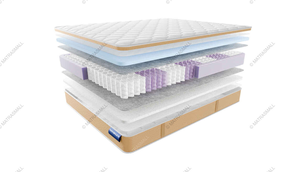 Для защиты слоев матраса от воздействий пружин с каждой стороны проложен слой натурального войлока. Войлок повышает ортопедические свойства матраса и придает ему упругость.